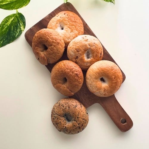 米粉と玄米粉、どちらも麹甘酒で仕込んだシュガーフリーのベーグルです。